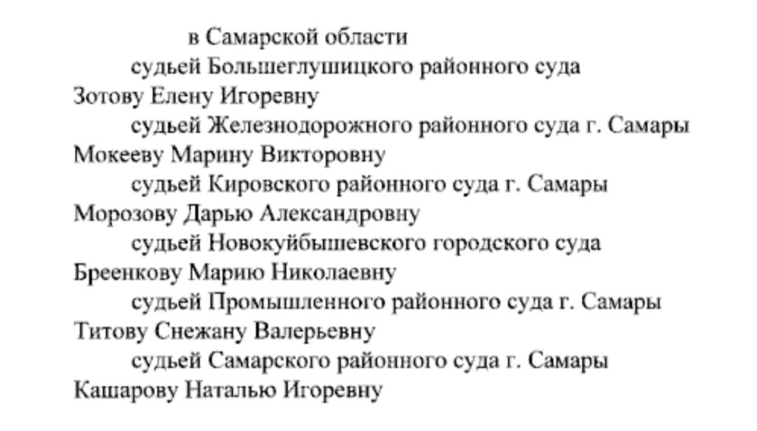 6 октября 2025 г. Президент России Владимир Путин подписал Указ № 706 о назначении судей федеральных судов. Документ опубликован на официальном портале правовых актов. Коллектив Новокуйбышевского городского суда Самарской области поздравляет Бреенкову Марию Николаевну с назначением и желает успехов в профессиональной деятельности. |